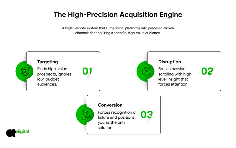 - Intent-Based Triggers: We replace passive “Contact” buttons with active, intent-based triggers. If a prospect lingers on a specific service page for 45 seconds, the “Silent Closer” intercepts them with a high-value asset tailored to that exact interest.